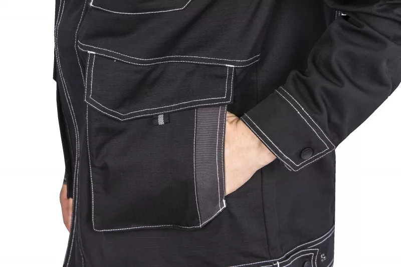 • egyenes szabású, modern dzsekifazonú bikolor munkakabát, szerelők számára kifejlesztve