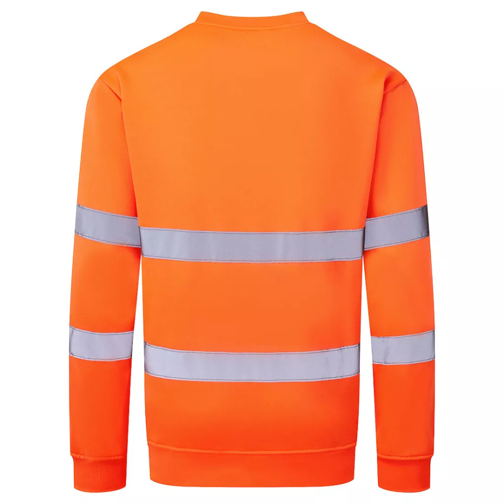 Kötött szövet szálcsiszolt hatású hátrésszel, meleget és extra komfortot biztosító bordás mandzsettával, bordázott szegéllyel, bő kialakítással, fényvisszaverő szalaggal, 40+ UPF minősítésű alapanyaggal (az UV-sugarak 98%-át blokkolja) és CE minősítéssel rendelkező jól láthatósági pulóver, amely az EN ISO 20471 szabvány szerint 50 mosásra minősített és megfelel a RIS 3279-TOM vasúti szabványnak (csak a narancs szín!).