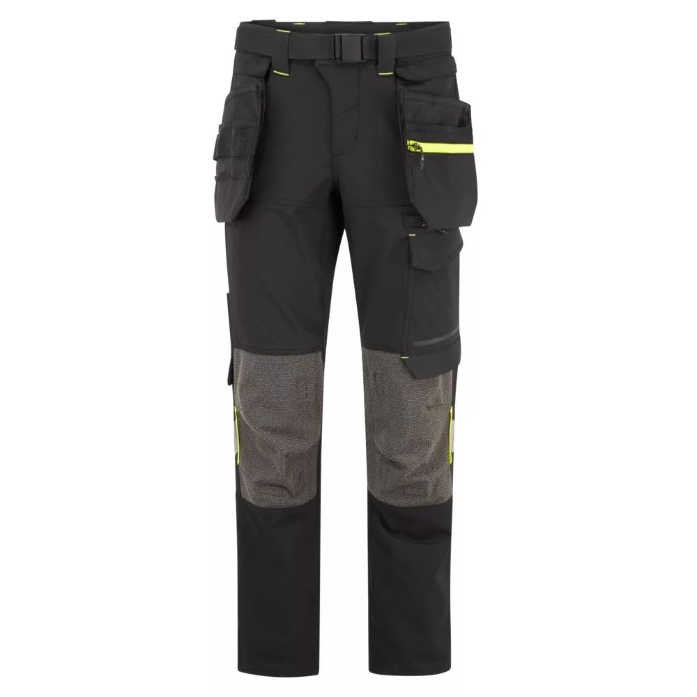 Az EV4 Stretch lengőzsebes nadrág továbbfejlesztett ergonómikus kialakítású, vízálló anyaggal a lábszár alsó részén. Emelt derékkal és oldalsó gumirozással kiváló védelmet nyújt minden munkapozícióban. A nadrág hajlított térddel, zárt térbetét kialakítással rendelkezik. Állítható oldalról tölthető térdpárnazsebeket, tágas elülső zsebeket és sokoldalú, cipzáras combzsebeket tartalmaz a telefonok, tollak és szerszámok biztonságos tárolására. Háromszoros varrás a maximális tartósság érdekében.