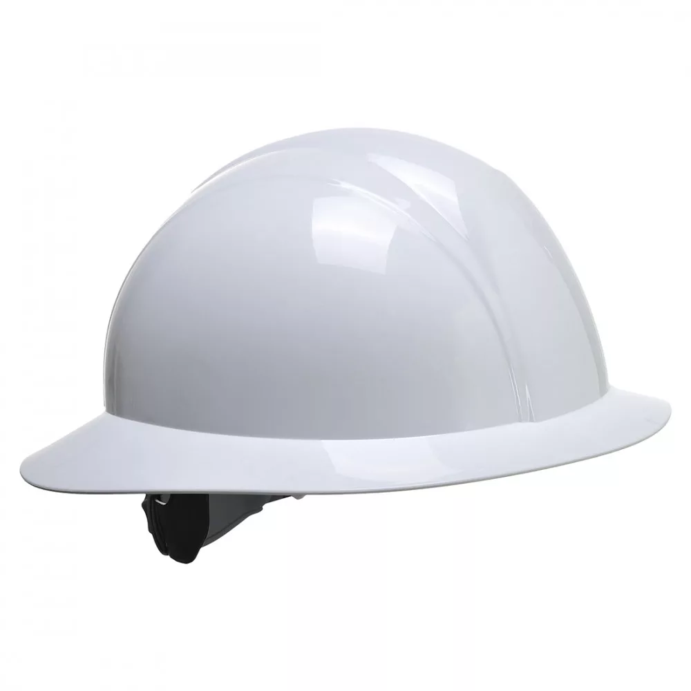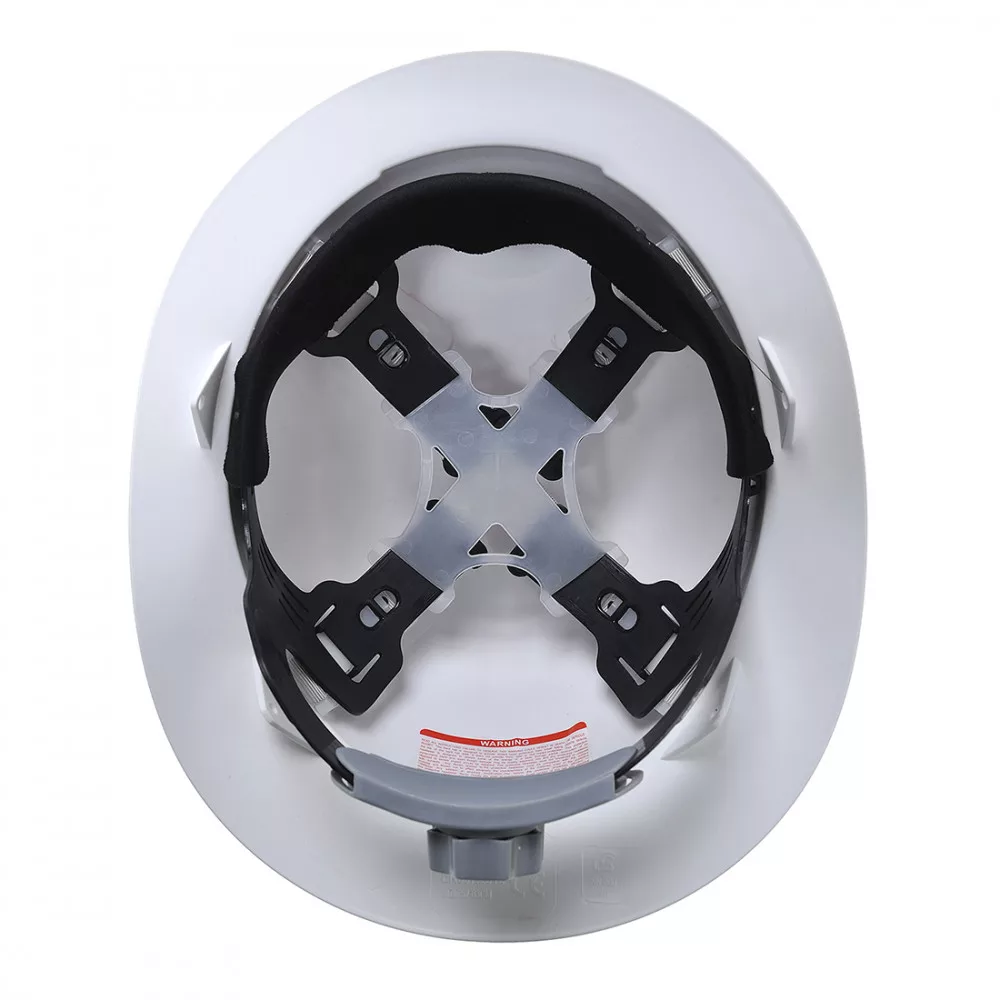 Könnyített PP védősisak, 4 pontos nylon sisakkosárral, állítható kivitelben (52-63 cm), puha izzadtságszalaggal.