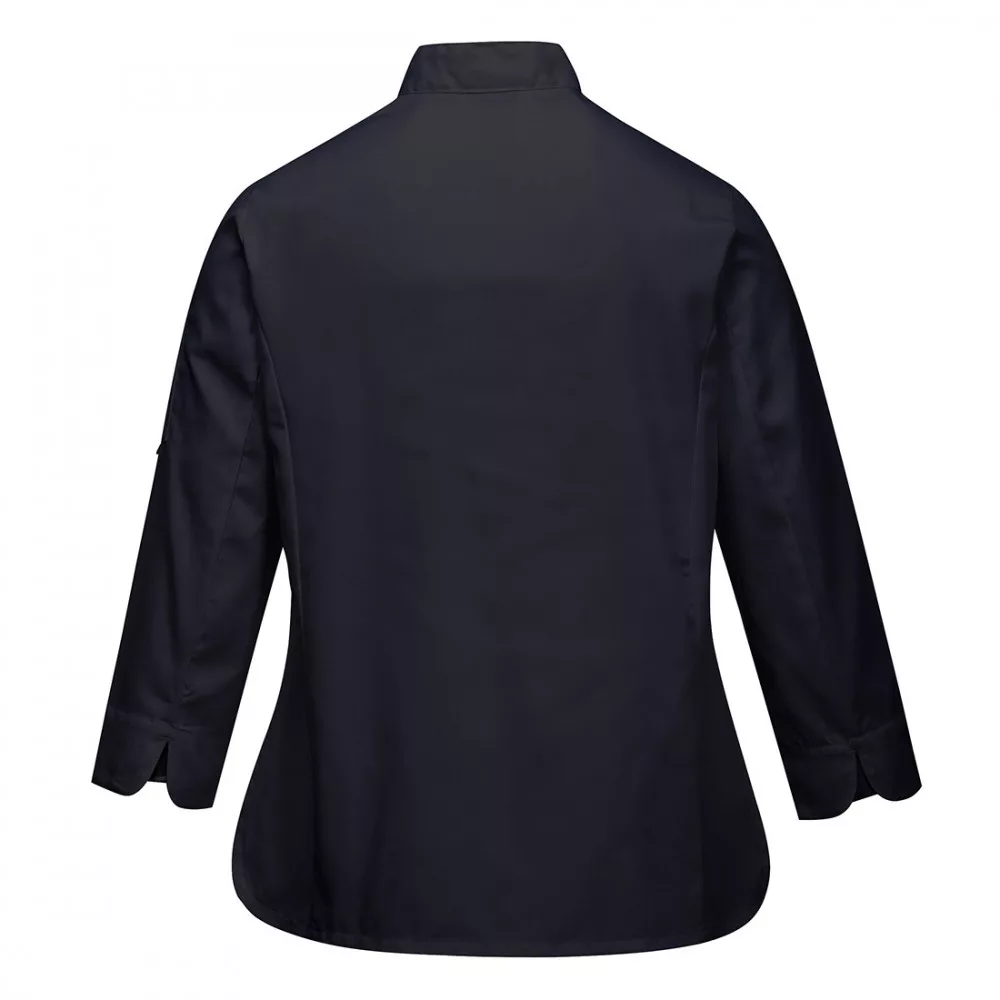 Kifejezetten hölgyek részére kialakított séfkabát mely a kényelem és funkcionalitás mellett kiválóan is illeszkedik. Oldal- mandzsetta- és MeshAir hónalj szellőző nyílásokkal. Stílusos kialakítás 4 sor megfordítható levehető gombokkal és praktikus zsebekkel rendelkezik.,Francia mandzsetta,Ujjzseb,Szellőzőnyílások,MeshAir™ szellőző hálós kialakítás,Mérettartó alapanyag,Tartós szövet,Négy soros gombolás