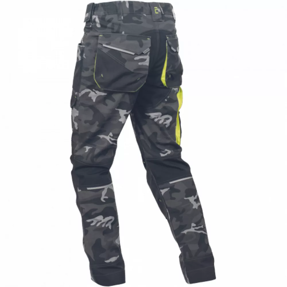Férfi nadrág rugalmas derékkal és többfunkciós zsebekkel. Megerősített térdrész és térdzseb Oxford 600D anyagból térdvédő behelyezéséhez. Ellenálló hármas fedőző varrás az üleprészen és a meghosszabítható szárakon. Modern terepmintával.