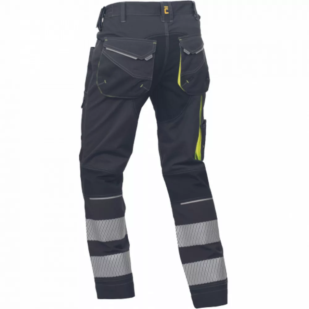 Férfi nadrág rugalmas derékkal és többfunkciós zsebekkel, 7 cm-es szegmentált fényvisszavető csíkokkal. Megerősített térdrész és térdzseb Oxford 600D anyagból térdvédő behelyezéséhez. Ellenálló hármas fedőző varrás az üleprészen és a meghosszabítható szárakon.