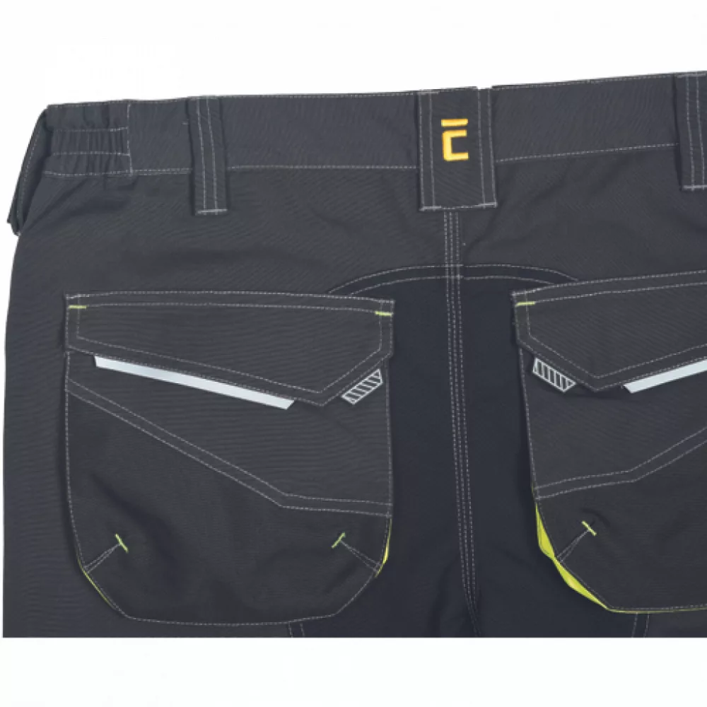 Férfi rövidnadrág rugalmas derékkal és többfunkciós zsebekkel. Megerősített zsebek Oxford 600D anyagból. Ellenálló hármas fedőző varrás az üleprészen és a szárakon.