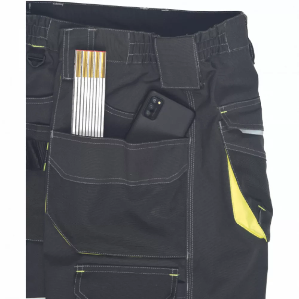 Férfi rövidnadrág rugalmas derékkal és többfunkciós zsebekkel. Megerősített zsebek Oxford 600D anyagból. Ellenálló hármas fedőző varrás az üleprészen és a szárakon.