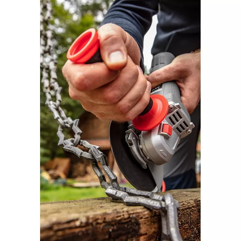 GRAPHITE sarokcsiszoló, teljesítménye 750 W, 125 mm átmérőjű korongokkal használható, elérhető fordulatszám: 12000 ford/perc. A sarokcsiszoló a véletlen bekapcsolást megakadályozó két fokozatú nyomógombbal, továbbá az orsót reteszelő nyomógombbal rendelkezik. Az ergonomikus formának (nagyon keskeny ház) és a pontos kiegyensúlyozásnak köszönhetően a készülék nagyon kényelmes - akár egykezes - munkavégzést biztosít.