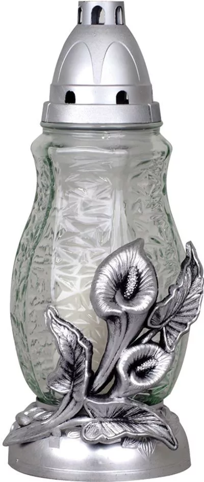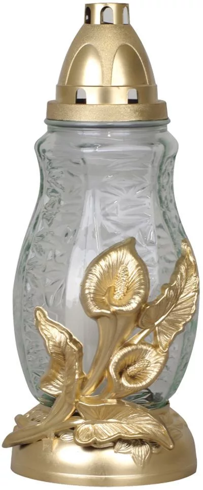 Sír lámpás Grave, calla liliomokkal, arany/ezüst színkeverék, 40 h, 110 g, magassága 28 cm, sírhoz