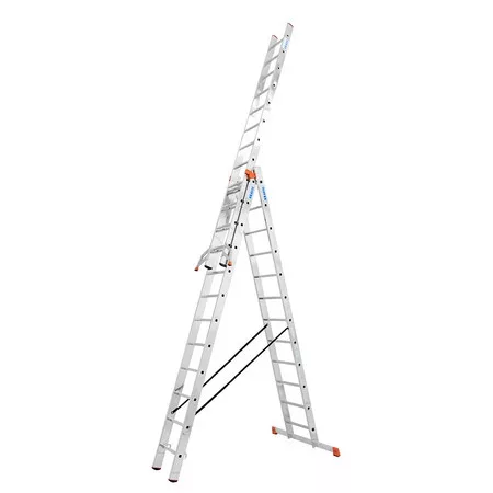 • Ez a sokcélú alumínium létra rendkívül praktikus és könnyen hordozható. 3x9 fokozattal rendelkezik, ami lehetővé teszi az állítható hosszúságot 2,70 métertől 6,05 méterig. Ennek ellenére a létra súlya mindössze 16,4 kg, így könnyen szállítható és használható különféle munkafeladatokhoz.