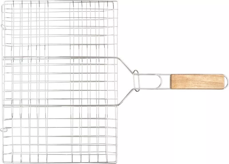 A Strend Pro Grill Hússütő praktikus segítője a nyílt tűzön vagy grillen való grillezésnek. A 49 × 35 × 1,5 cm-es, masszív fémszerkezetű sütő lehetővé teszi, hogy nagyobb mennyiségű ételt készíthessen egyszerre. Vastag rácsának köszönhetően alkalmas húsok, zöldségek vagy halak grillezésére, megakadályozva, hogy azok a tűzbe essenek. A fa fogantyú kényelmes és biztos fogást biztosít, még magasabb hőmérsékleten is. A pörkölő könnyen kezelhető, tartós és könnyen tisztítható, így ideális társ minden grillezéshez.