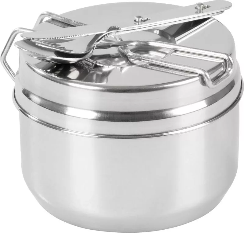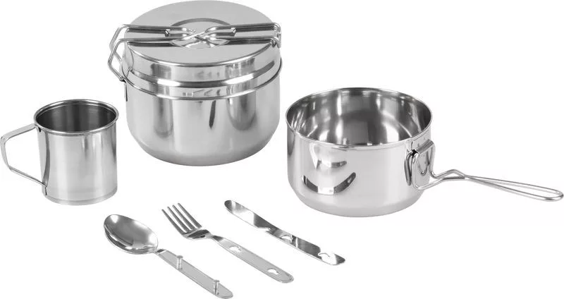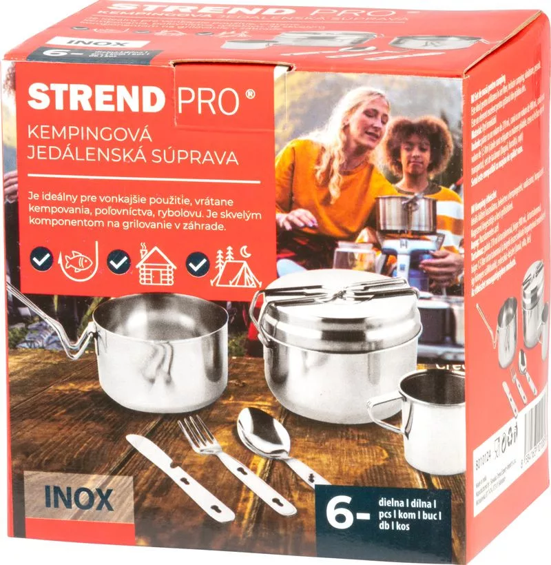 A praktikus Strend Pro kemping étkészlet ideális társ a szabadtéri kirándulásokhoz, kempingezéshez, túrázáshoz vagy kerti felszerelésként. A készlet tartalmazza az ételek elkészítéséhez és elfogyasztásához szükséges alkatrészeket, amelyek tartós rozsdamentes acélból (INOX) készültek, ami hosszú élettartamot és könnyű tisztíthatóságot garantál.