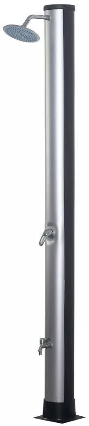 A kerti napelemes zuhany egy darabból áll, melynek PP burkolata egyben melegvíz-tároló és napkollektor is. A vízellátó szerelvények a test belsejében találhatók. A vezérlőkar, a zuhanyfej és a zuhanyfejtartó a zuhanytesten kívül találhatók. Az alsó részen talp található, amely a zuhany rögzítésére szolgál. A töltő csatlakozó a hátsó alsó részben található. Teljesen normális, ha a karos csaptelep lezárása után néhány másodpercig víz folyik ki a zuhanyfejből. A kerti napelemes zuhanyzót magánépületekben való használatra tervezték, például a kertben, kerti medencék vagy teniszpályák tartozékaként. A zuhany egy külön csappal van felszerelve a kényelmes lábmosáshoz.