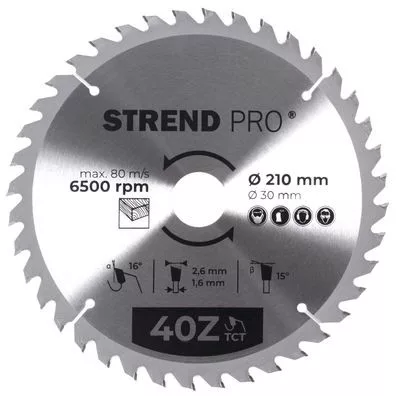 Strend Pro TCT 210 x 2,6 x 30/20 mm 40T, körfűrészlap