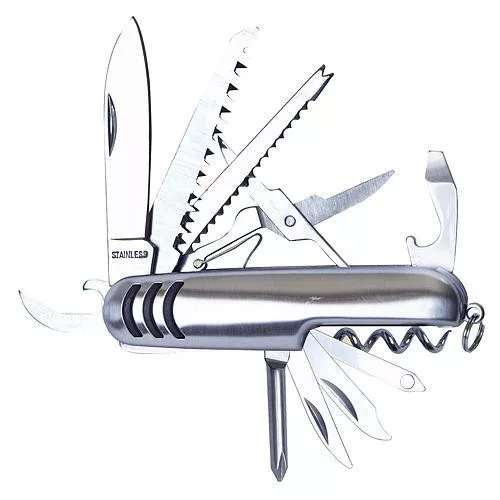A multifunkciós, 15 az egyben svájci bicska 15 funkciót kínál egyetlen egy praktikus zsebkés formájában.