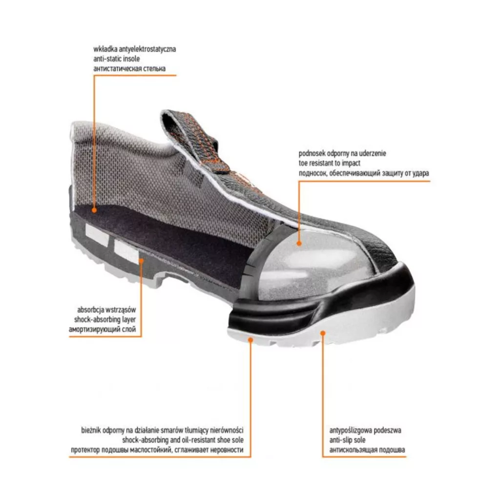 A NEO munkavédelmi szandálok alapvető védőeszközök a munkavégzéshez. Kiváló minőségű bőrből készülnek, a magas hőmérsékleten vagy az épületen belül végzett munka kényelmét növelő kivágásokkal. A rezgéselnyelő rendszerrel ellátott csúszásmentes talp gondoskodik a kényelemről és a biztonságról. A megerősített acél orrmerevítő véd a sérülések ellen. A lábbeli belső részének puha kikészítésének köszönhetően magas fokú a munkavégzés kényelme. A CE jelölés a biztonság garanciája, bizonyítja, hogy a termék teljesít minden európai uniós követelményt.