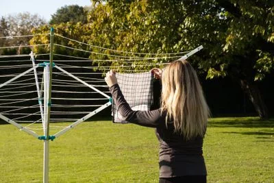 Kültéri szárítóállvány könnyű nyitással és zárással. Egyesíti a nagyszerű kialakítást és a mindig tökéletesen leválasztott zsinórok innovatív rendszerét. Használható szennyes, ágyneműk és törölközők szárítására. A szárító rozsdamentes acéllakkozásnak köszönhetően rozsdamentes. Méretei 268x185x180 cm.
