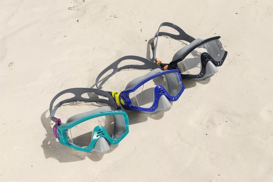 Bestway® Hydro-Swim Tiger Beach úszószemüvegek ideális kiegészítői a víz alatti szórakozásnak a medencében vagy a tengerparton. A szemüvegek felnőtteknek készültek, keményített üveglencsével, széles látómezővel és dupla tömítéssel, amely pontos és szoros illeszkedést biztosít. Nagyra fogod értékelni a teljesen állítható, osztható fejpántot, amely mindig biztosan a helyén marad.