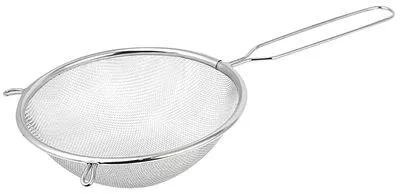 A 20 cm átmérőjű rozsdamentes acél szita öntésre, szűrésre és paszírozásra alkalmas. Hosszú nyele van, kiváló háztartási segítő.