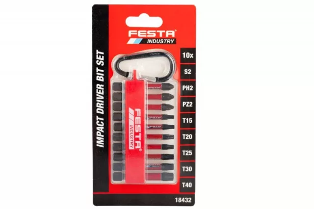 Torziós bitkészlet PH, PZ, torx S2 1/4" 50mm 10 db FESTA INDUSTRY