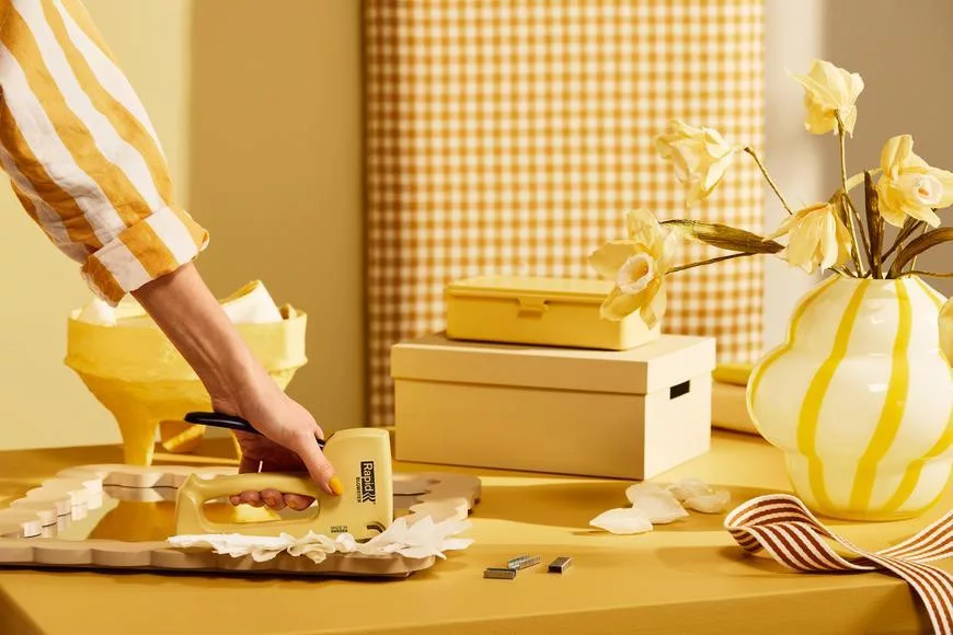Fedezze fel a csodálatos RAPID R13 Spirit of Sweden Blomster-t - a tökéletes társ a kreatív térben! A figyelemre méltó, 90%-ban újrahasznosított műanyagból készült, régi hűtőszekrényekből származó eszköz nemcsak praktikus, hanem környezetbarát is. Büszkén gyártják a svédországi Hestrában, amely a magas minőség és megbízhatóság szimbóluma.Tavasszal és nyáron Svédországot virágzó mezők és rétek borítják, és innen kaptuk az ihletet a gyönyörű sárga színhez. A virágot jelentő svéd szó pedig a "blomster". A lakberendezés legújabb trendjeinek megfelelően ez az alaptartozék elegáns és funkcionális kiegészítője lesz a munkaterületének. Tűzőgépünk