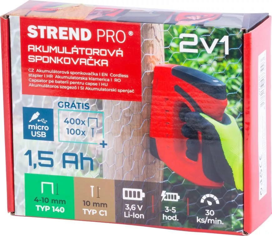 A Strend Pro akkumulátoros tűzőgép praktikus segítője minden barkács- és kreatív műhelynek. Ideális bútorok kárpitozásához, dekoráláshoz, vékony faanyagok rögzítéséhez, felújítási munkákhoz. A tűzőgép 2 funkcióval rendelkezik - szöglövés és tűzés. LED-es töltésjelzővel, töltöttségi állapotjelzővel és biztonsági biztosítékkal van ellátva, amely megvédi a felhasználót a véletlen kilövéstől. A beépített Li-ion akkumulátor lehetővé teszi, hogy a tűzőgép bárhol használható legyen - kényelmesen, kábelek nélkül. Tűzőkapcsok/kapcsok percenkénti gyakorisága: 30. Alkalmas a 140-es típusú kapcsokhoz 4-10 mm és a C1-es típusú 10 mm-es szögekhez. Tálca kapacitása: 80.