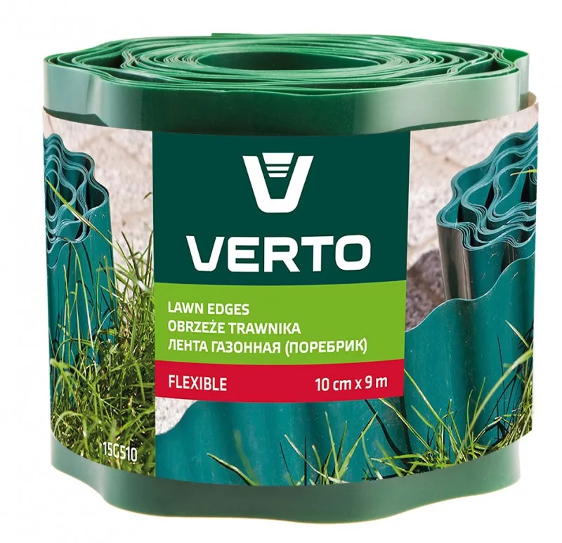 VERTO gyepszegély hossza 9 m, zöld színű. Rugalmas anyagból készül.