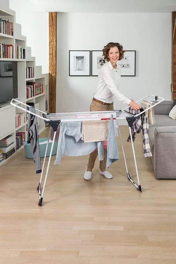 A Vileda King szárítógép biztonságos és stabil kialakítású alumínium és vas kombinációjával. A 20 méteres maximális szárítófelülettel ez a szárnyas szárító pótolhatatlan segítője a napi rutinnak. Használja ki előnyeit, és próbálja ki a felső ruhaszárítás élményét. Az strongXXL vezetékeknek/strong köszönhetően a Vileda King szárítógép segít abban, hogy szárítás közben kevesebb gyűrődést érjen el a ruháin, ami viszont lerövidíti a vasalási időt. A tér és a mobilitás a két legfontosabb jellemző a szárítógépeknél és a ruhaszárításnál.