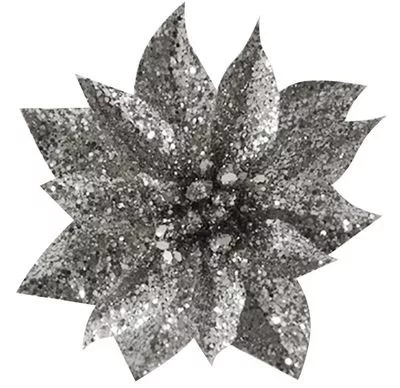 Virág Glitterpoinsettia, Csipeszel, Ezüst, 9x8 cm, 6 db