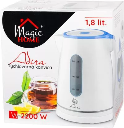 Az Adira vízforraló a népszerű fehér-kék színkombinációban mindennapi segítője lesz, otthoni és hasonló környezetben való használatra tervezték, mint például: - üzlethelyiségek, irodák és egyéb munkahelyek teakonyháiban - szállodák, motelek, egyéb lakóingatlanok vendégei számára - szállást és reggelit biztosító vállalkozásoknál.