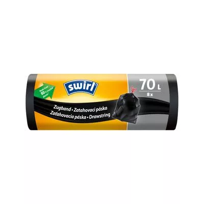 Zacskók Swirl, extra erős, hulladékhoz, összehúzható, fekete, 70 lit., csomag. 8 db