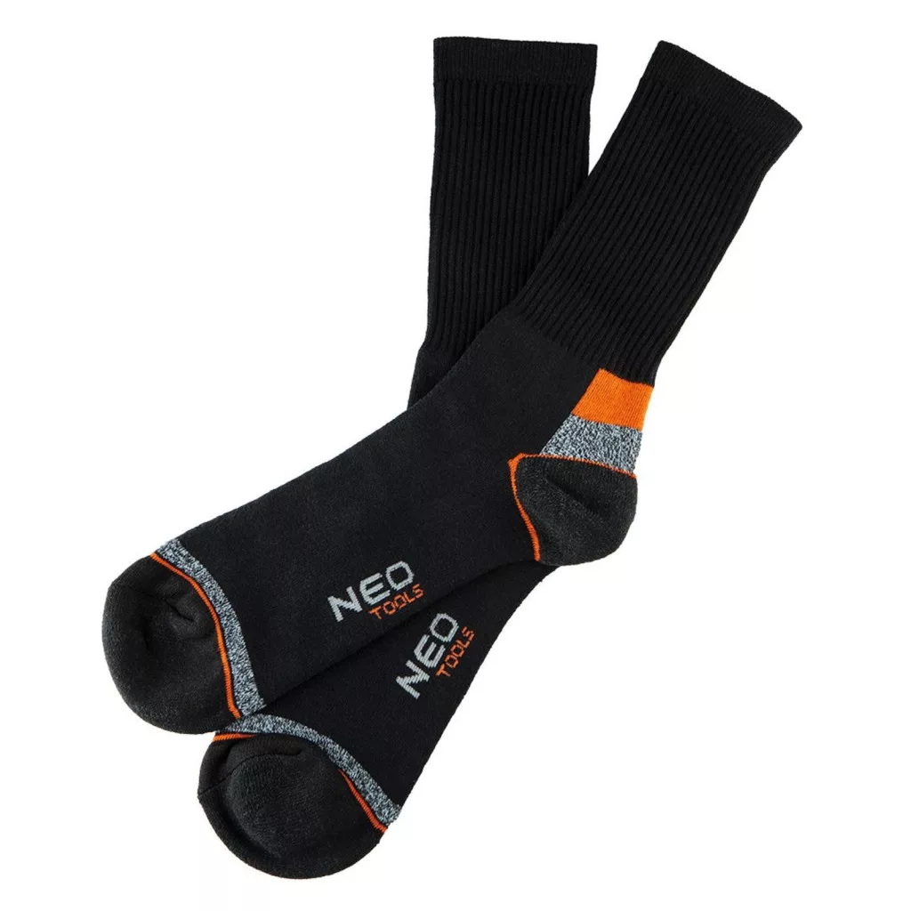 Speciális NEO zokni kiváló minőségű pamutból, poliészter és elasztán hozzáadásával, kényelmes és higiénikus munkavégzést biztosít. Az ujjakra és sarokra felvitt erősítések védenek a gyors kidörzsölődés ellen. Diszkrét fekete színben narancssárga-szürke betétekkel.