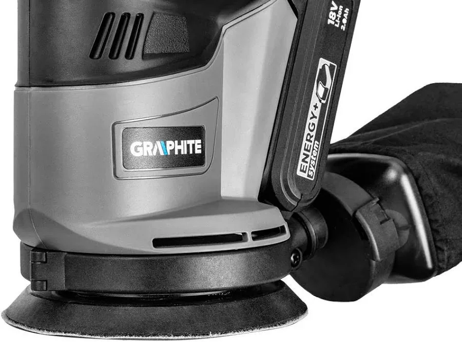 A GRAPHITE excentercsiszoló a 18V Li-Ion GRAPHITE Energy+ akkumulátorokkal kompatibilis.