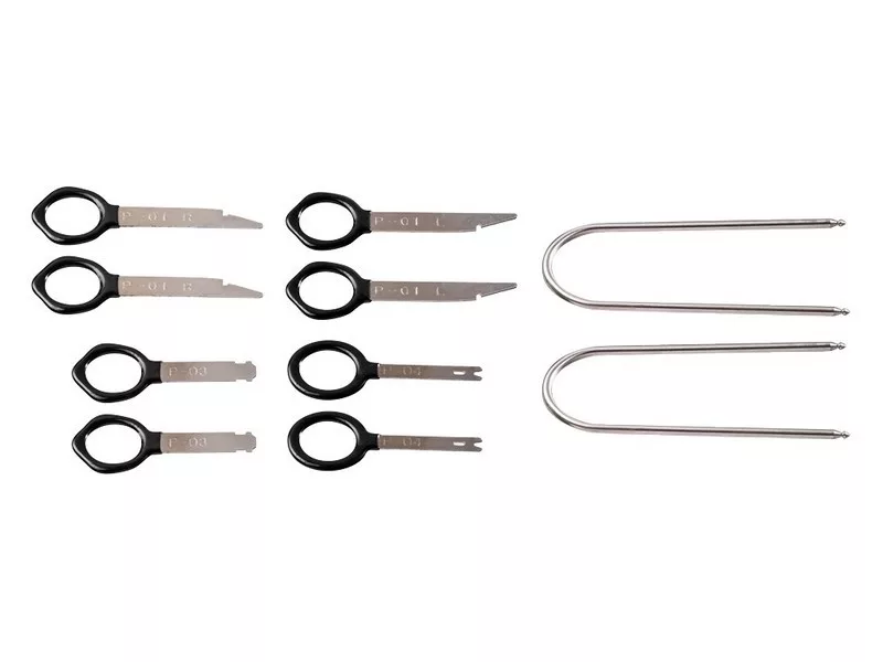 A NEO autórádió szerelő készlet 10 db kulcsot (kiszedőt) tartalmaz autórádiók kiszereléséhez csere vagy javítás esetén. A szerszámot be kell csúsztatni a szerelőnyílásokba, majd ki kell venni a rádiókészüléket. Népszerű márkák személygépkocsijaihoz. A készlet minden eleme rugalmas szénacélból készül műanyag nyéllel. A NEO márka a professzionális igényeket is kielégíti.