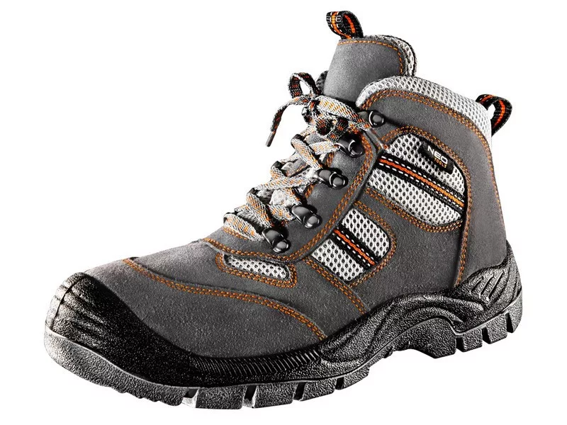 A NEO munkavédelmi magas szárú cipő alapvető védőeszköz a munkavégzéshez. A felsőrész kiváló minőségű hasított bőrből készül. A lélegző textilbetétek jó szellőzést biztosítanak. A rezgéselnyelő rendszerrel ellátott csúszásmentes talp gondoskodik a kényelemről és a biztonságról. Az átszúrás ellen védő fém betét és a megerősített fém orrmerevítő véd a sérülések ellen. A lábbeli belső részének puha kikészítésének köszönhetően magas fokú a munkavégzés kényelme. A CE jelölés a biztonság garanciája, bizonyítja, hogy a termék teljesít minden európai uniós követelményt. A NEO márka a professzionális igényeket is kielégíti.