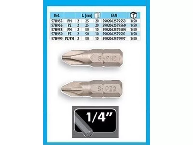 Csavarhúzó bit, hossza 25 mm, 1/4",
