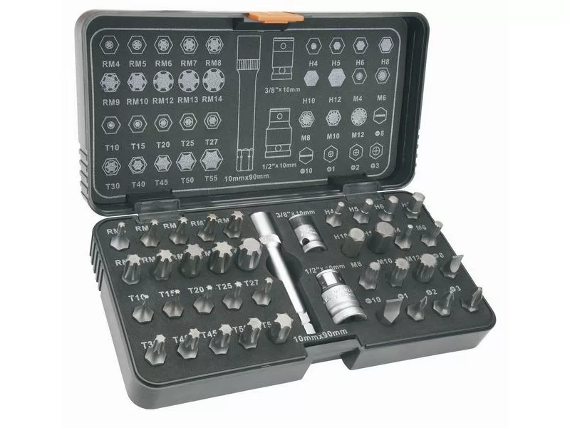 - Torx T10, T15, T20, T25, T27, T30, T40, T45, T50, T55,