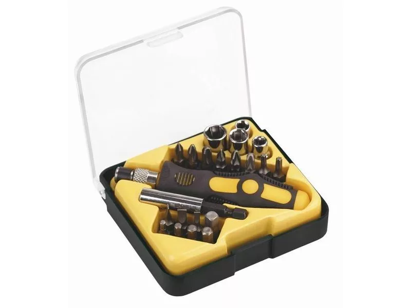 A TOPEX dugókulcs és csavarhúzó bit készlet 22 elrendezett elemet tartalmaz kényelmes műanyag tokban. Mindegyik elem kiváló minőségű, a szerszámnak hosszú élettartamot biztosító króm-vanádium acélból készült. A készletben többek között hatlapú dugókulcsok, csavarhúzó bitek, valamint a munkavégzés kényelmét biztosító, csúszásmentes bevonattal ellátott műanyag markolatú csavarhúzó nyél található. A készlet széleskörű felhasználásra találhat mindenféle apróbb szerelési, gép- és autójavítási és egyéb munkában minden ezermester otthonában vagy garázsában. A TOPEX márka ezermestereknek készül.