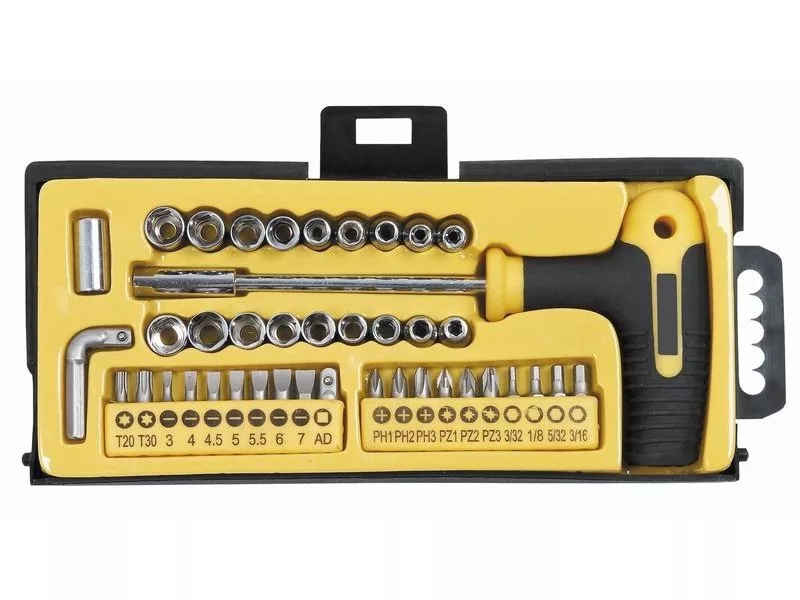 Csavarhúzó bitek és dugókulcsok hajtószárral, 41 db-os készlet, 1/4",