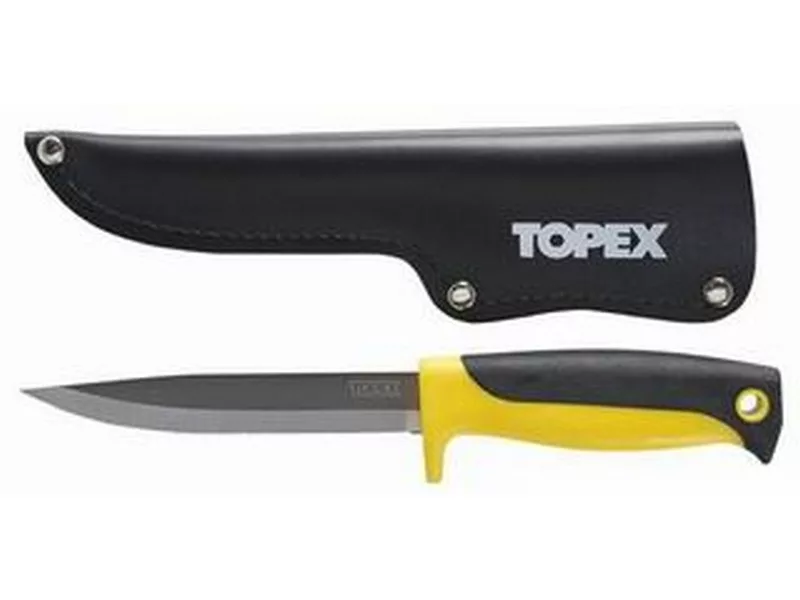 TOPEX univerzális bicska 120 mm-es pengével. A penge kiváló minőségű rozsdamentes acélból készült, ami hosszú élettartamot biztosít a szerszámnak. Az ergonómikus, csúszásmentes anyaggal bevont műanyag markolat biztosítja a kényelmet és a biztonságot a munkavégzés során. A bőrtok megkönnyíti a tárolást és a szállítást A TOPEX márka ezermestereknek készül.