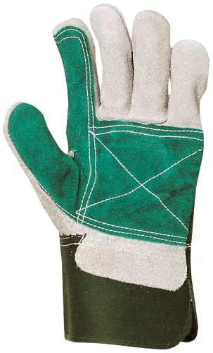 Bőrkesztyű, Szürke Hasíték, Dupla Bőr Tenyér/Zöld Vászon 12