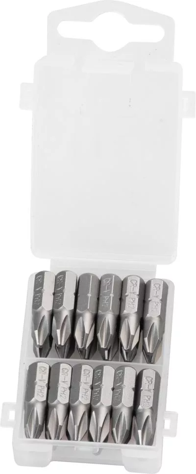 Egy 24 darabból álló bitkészlet nem hiányozhat a műhely felszereléséből. PH2 25 mm-es biteket tartalmaz. Króm-vanádiumból készült.