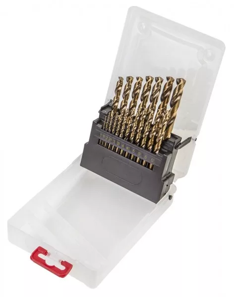 VERTO fémfúró készlet (kat. sz. 60H812) 1.0-10.0 mm mérettartományban. Magas minőségű gyorsvágó acélból. Különleges élezésének köszönhetően ideálisan beválnak pontos furatok készítésében mindenféle fémben.