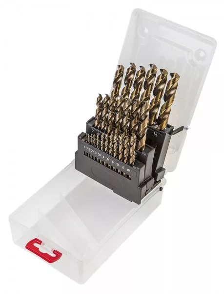 VERTO fémfúró készlet (kat. sz. 60H814) 1.0-13.0 mm mérettartományban. Magas minőségű gyorsvágó acélból. Különleges élezésének köszönhetően ideálisan beválnak pontos furatok készítésében mindenféle fémben.