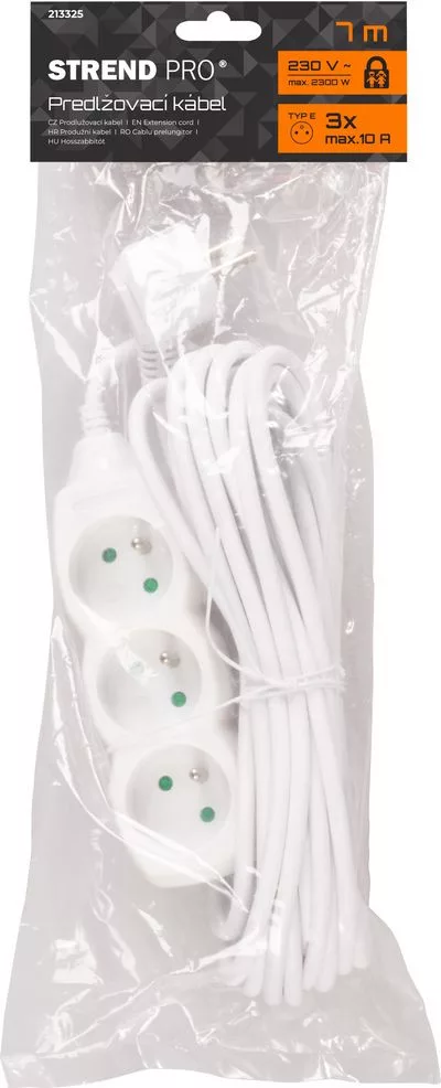 A praktikus DG-F803B hosszabbító kábel fehér színben biztosítja a 7 méter hosszú áramszolgáltatást. Használható irodákban és háztartásokban is. Három konnektor csatlakozónak köszönhetően lehetővé teszi több eszköz csatlakoztatását egyszerre.