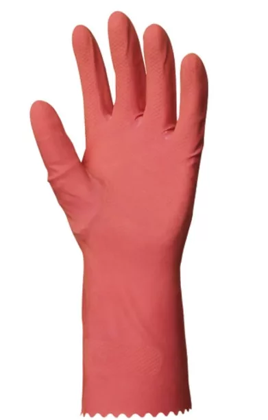 HTG RÓZSASZÍN GUMIKESZTYŰ, 30CM/0,4MM, BOLYHOZOTT BELSŐ_XL RÓZSASZÍN HÁZTARTÁSI GUMIKESZTYŰ: • rózsaszínű, természetes latex • pamutbolyhozott belső • háztartási vegyszerek elleni védelem • 30 cm hosszú, 0,4 mm vastag • csúszás ellen érdesített tenyér • MÉRET: 10-es • CSOMAGOLÁS: 100/10 • EU szabvány: EN420 1. kat.