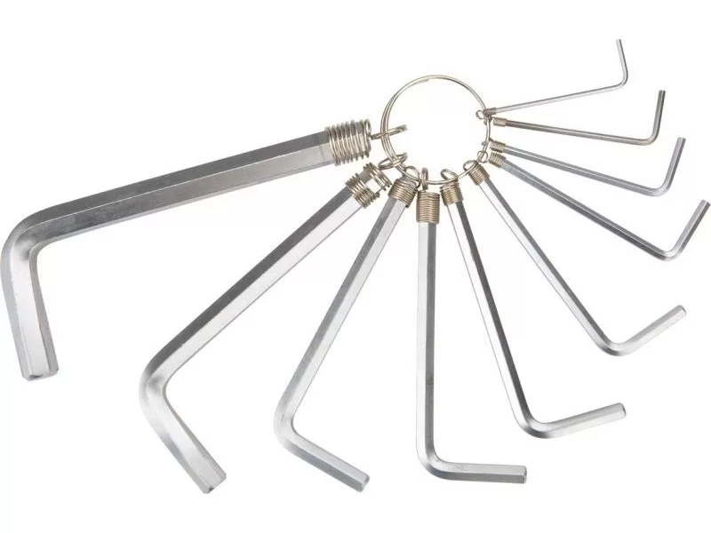 Imbuszkulcs készlet kulcskarikán, 10 db­os, 1,5-10 mm, CrV acél