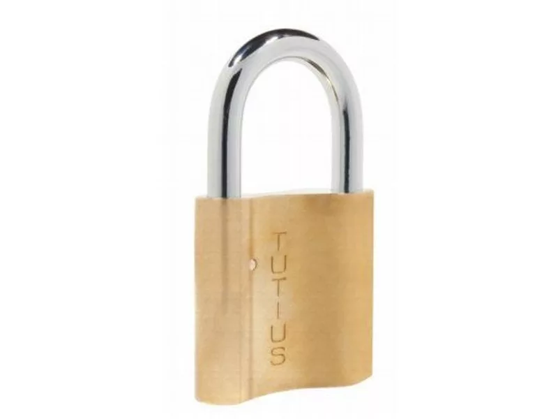 Elzett 2048 Tutius lakat. Sárgaréz kivitel. Méretek: 35, 45 és 55 mm. Mérettől függően 2 vagy 3 db kulccsal. Csapos rendszerű, 5 zárócsappal, 45-ös méretben hosszított kengyel