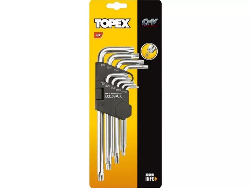 TOPEX Öt Lapú Kulcs Készlet 35D951 Ts10-50 9 Részes Hosszú, Lyukas
