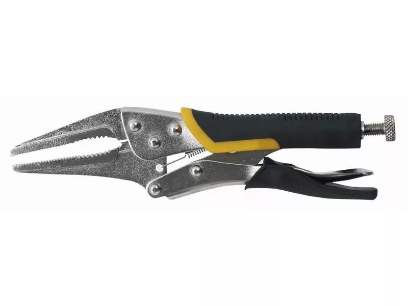 TOPEX hosszú önzáró fogó, 225 mm hosszú, 0-55 mm fogástartománnyal. A kilincsműves megoldásnak köszönhetően lehetséges a befogott elem folyamatos szorítása. Kiváló minőségű, a terméknek hosszú élettartamot biztosító króm-vanádium acélból készült. Az ergonómikus, csúszásmentes anyaggal bevont műanyag markolat magas fokú kényelmet biztosít a munkavégzés során. A TOPEX márka ezermestereknek készül.