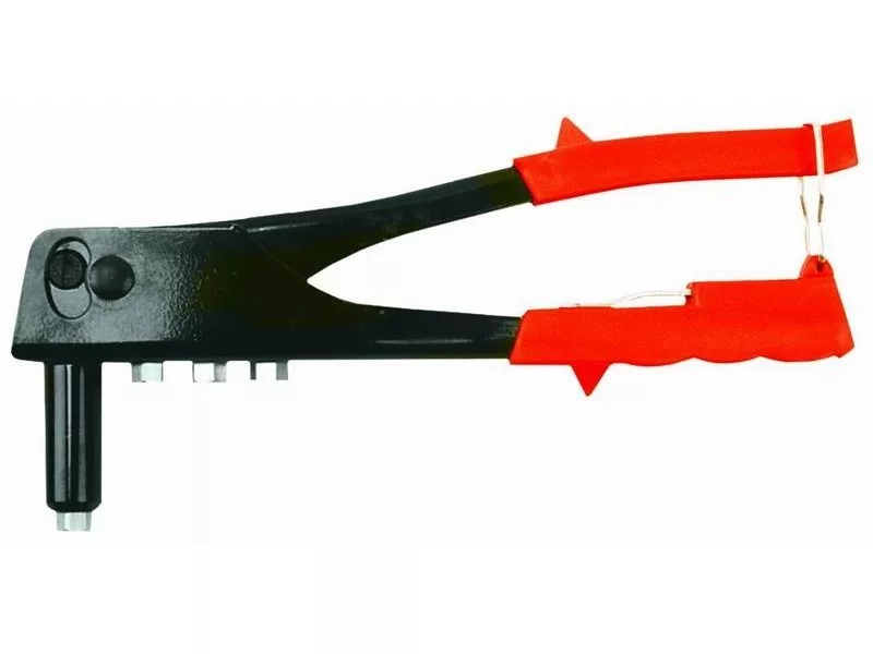 Top Tools szegecshúzó 2,4 mm, 3,2 mm, 4,0 mm, 4,8 mm átmérőjű alumínium szegecsekhez. Kényelmes nyelek a tárolást megkönnyítő zárgyűrűvel. A készletben kulccsal a húzófejcseréhez.