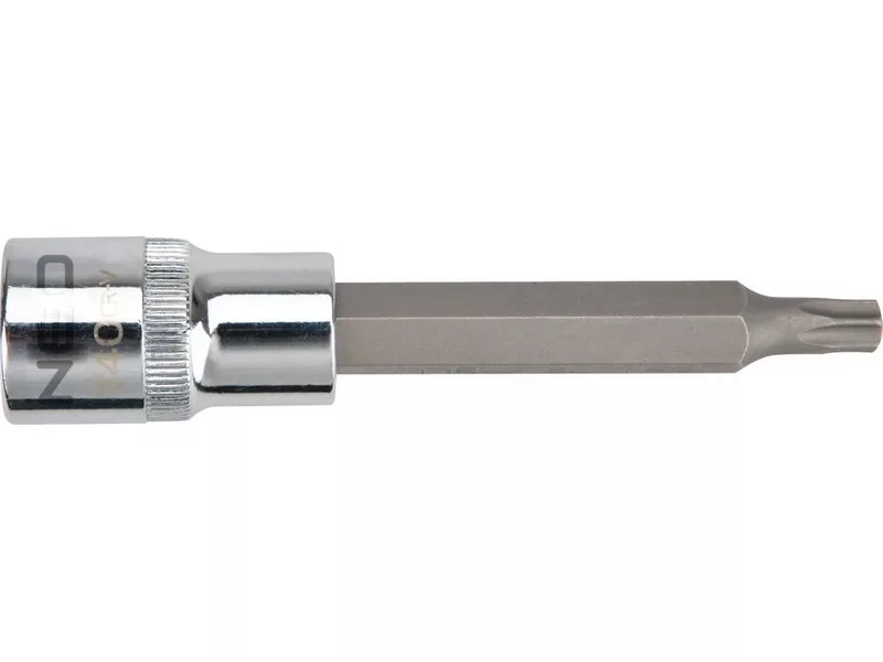 NEO Torx bit 1/2”-os fészkű dugófeltéten, 100 mm hosszú. A dugófeltét nagy ellenállóképességű króm-vanádium acélból készül. A hatlapú bit kiváló minőségű S2 acélötvözetből készül. A szerszám minőségét bizonyítja a TÜV tanúsítvány. A NEO márka a professzionális igényeket is kielégíti.
